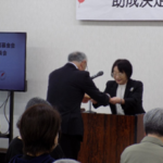 助成金目録を受領する坪木会長