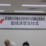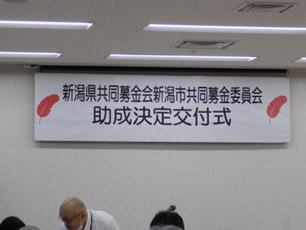 新潟市共同募金委員会公募型助成に当自治会申請の「陽光自治会防災訓練」が「安心安全なまちつくり支援事業」の助成対象事業として決定し、その交付式に坪木会長が出席しました。
